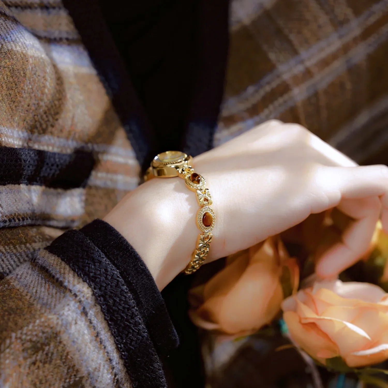 BS Bienenschwester FA1859 Damen Quarzuhr – Hochwertige Legierung mit Jade-Armband, Wasserfest, Elegante Dress-Uhr