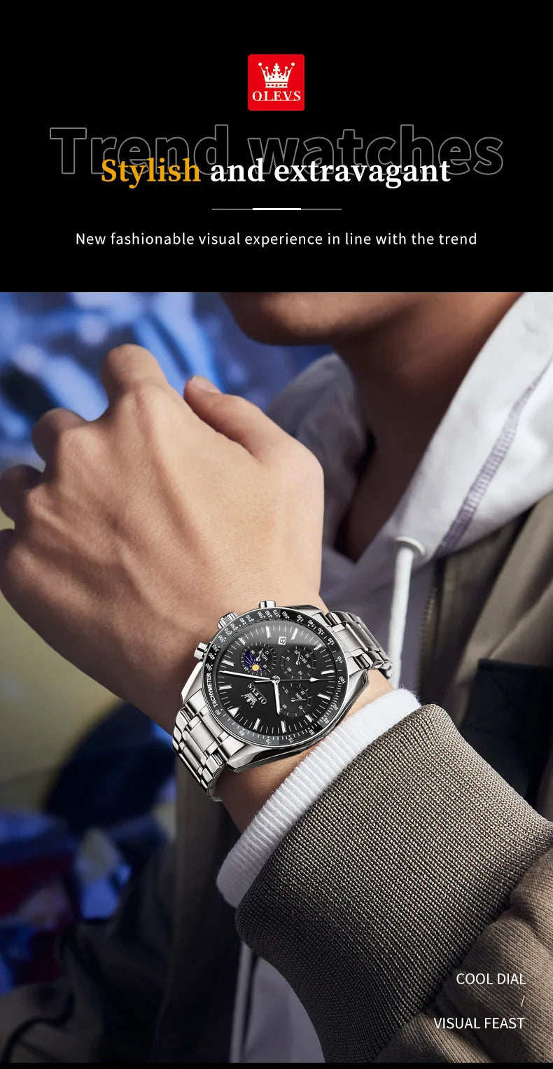 OLEVS Herren Quarz-Armbanduhr 3618 – Chronograph, Wasserdicht, Luminous