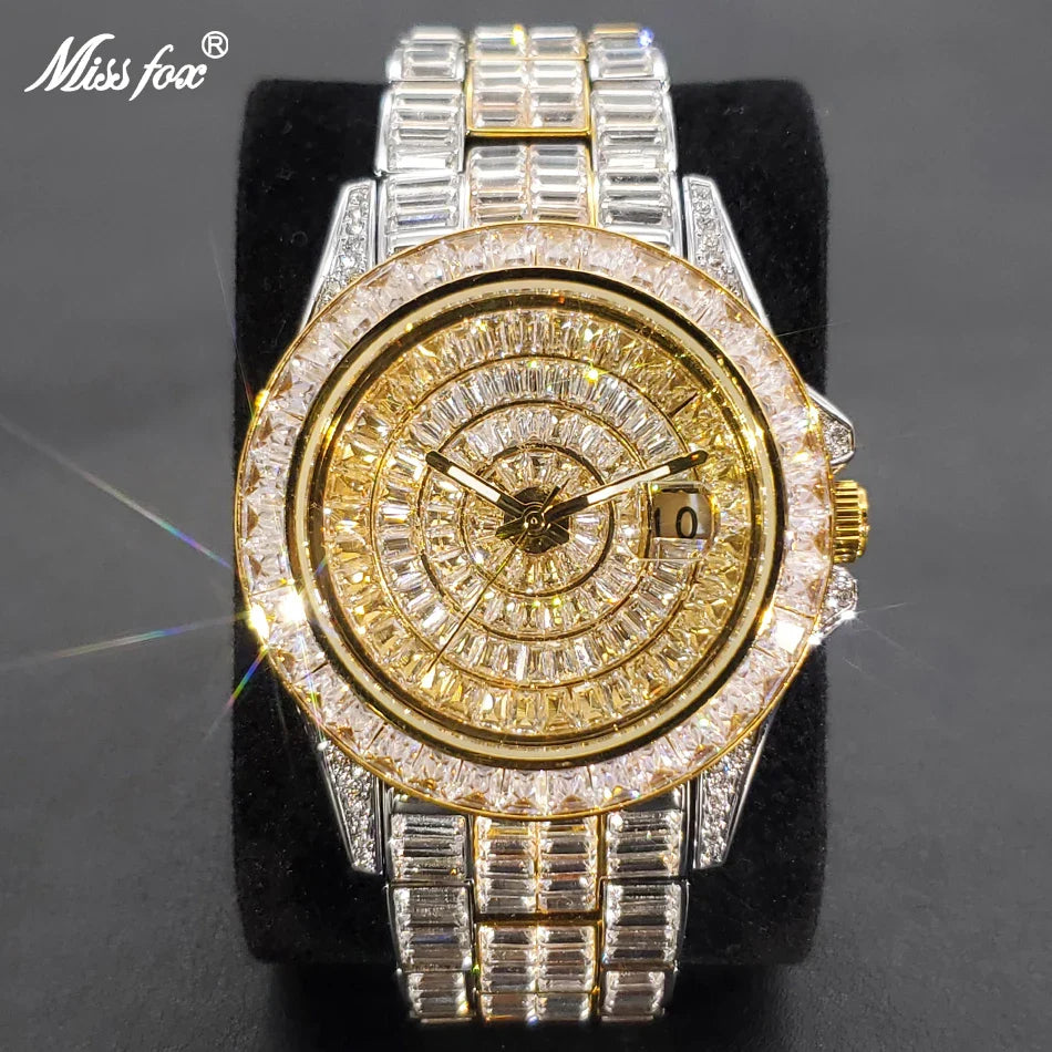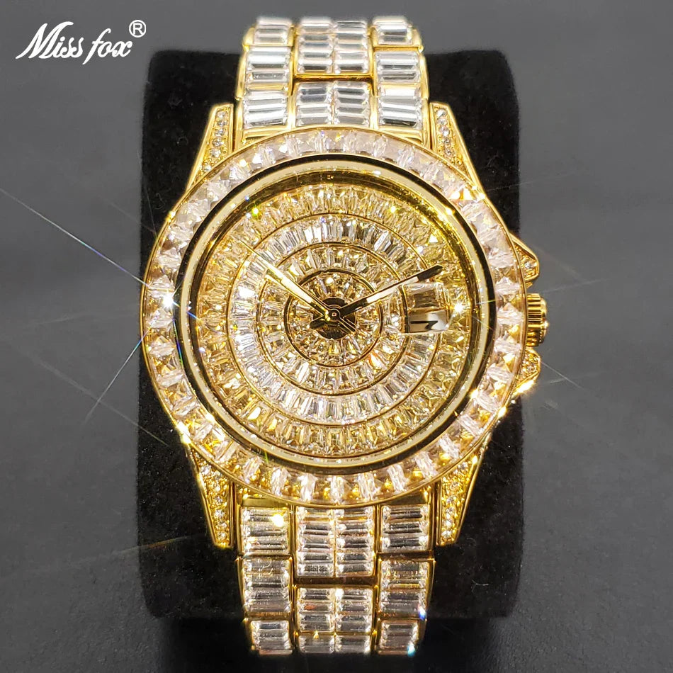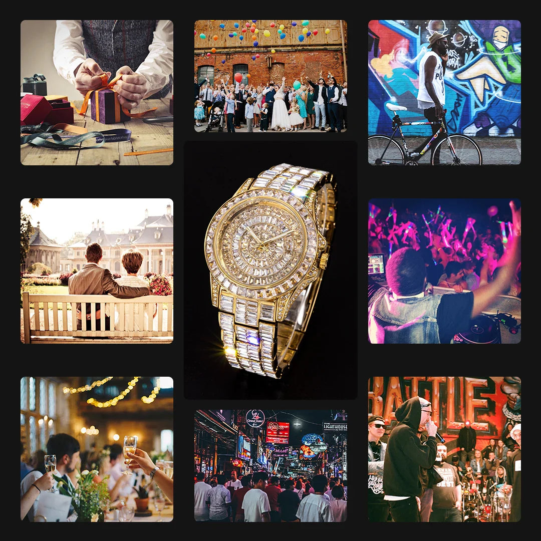 Voll Diamantbesatz: Diese Uhr ist mit funkelnden Diamanten besetzt, die ihr ein beeindruckendes „Blingbling“-Design verleihen. Ideal für alle, die ein auffälliges Statement setzen möchten. Die Diamanten fangen das Licht perfekt ein und sorgen für einen luxuriösen Look.
